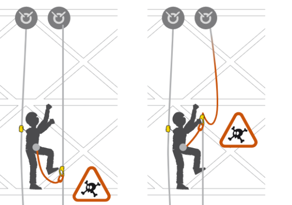 手升又稱為連接牛尾,牛尾為使用者提供了便利性和移動(dòng)性,但也帶來了風(fēng)險(xiǎn),使用者稍加疏忽,可能會(huì)位于抓繩器之上,或牛尾松弛,這就帶來了潛在的墜落風(fēng)險(xiǎn)。和胸升一樣,我們需要盡可能保持其受力狀態(tài),以減少自由墜落的可能。